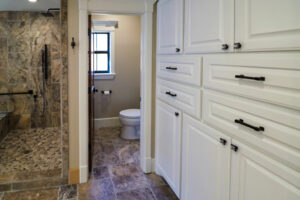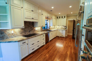 Our clients sought to update and brighten this original Kickerillo home while adding ADA suggestions to accommodate a visually impaired family member. In collaboration with our clients, and led by Andrew Adams, the team at Covington Signature Homes designed a new first floor floorplan to accommodate everyone, including those with visual impairments,with a larger kitchen and bar area that would open to the living room so the home would be ready to entertain large crowds. By expanding the kitchen area and creating better flow, at completion, the home became a more open and welcoming place for our clients. As with all homes by Covington Signature Homes, the home features custom cabinetry throughout, gorgeous natural hardwoods floors, a level 5 smooth finish on the walls, exquisite Nordic Silver tiles in the master bath, an extensive hand-made closet system in the master bedroom, dog-friendly cabinets in the laundry room, along with other features desired by our clients. Overall, the final home is an elegant, livable, comfortable home for all family members to enjoy.